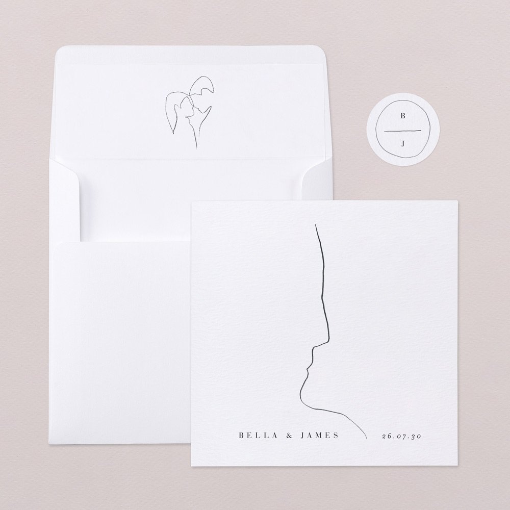 A minimalist wedding invitation reflecting your love... Invite your loved ones to the best day of your life with this The Kiss design.