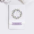 This wedding announcement comes in the form of a landscape card folded into three parts, accompanied by its personalised label. When you open it, your loved ones will discover the details of your special day. Enhance your cards with a pretty ribbon (available at extra cost), complete with its own label.