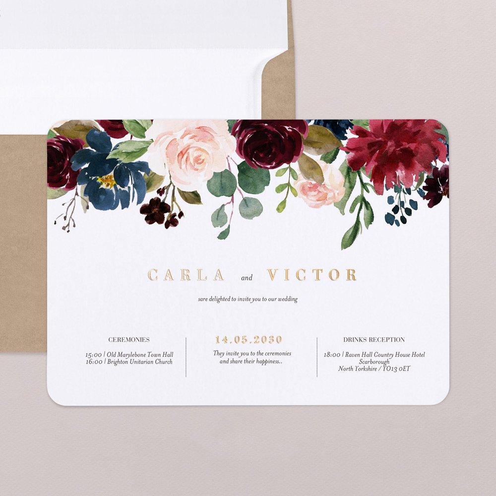 Postcard invitation can be personalised on both sides. Its rounded corners echo the soft feel of your wedding announcement.