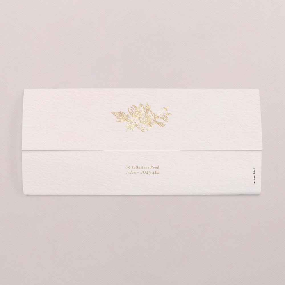 This invitation comprises two simple cards and a slip case. For added elegance, fasten your cards together with a pretty ribbon (optional extra).