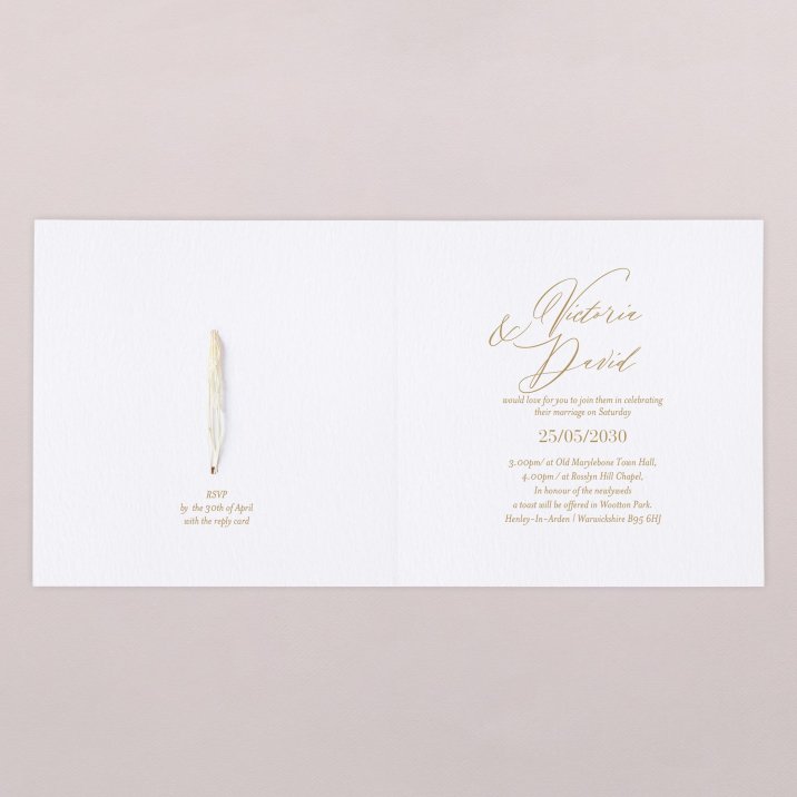 This wedding invitation is a double-sided square card, with openings on the front to be able to slide in some dried flowers (to be added as an accessory). In order for your guests to really appreciate the beauty of those delicate invitations, we recommend a hand-delivery to a postal-carrier standard delivery.