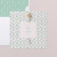 This wedding invitation is a double-sided square card, with openings on the front to be able to slide in some dried flowers (to be added as an accessory). In order for your guests to really appreciate the beauty of those delicate invitations, we recommend a hand-delivery to a postal-carrier standard delivery.