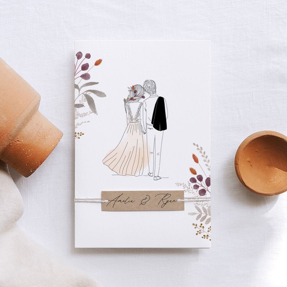 A beautiful illustration of the two of you along with delicate flowers and a wintry feel. You'll love the tender feel of the Winter Garden wedding invitation.
