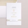 On the Bow and rings wedding invitation, two golden wedding rings are linked by an elegant ribbon. Accompanied by the bride and groom's names in gold, this precious symbol is an emotional announcement of the ceremony to come.