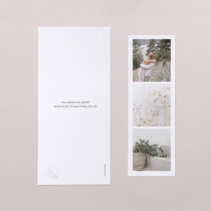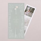 This wedding invitation is made of a double-sided card and a bookmark slipped on the inside. Two punched holes allow you to slide in a few dried flowers (to add as an accessory). So that your guests can appreciate the beauty of the whole invitation decorated with dried flowers, prefer hand-delivery to a postal send.