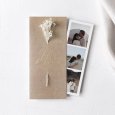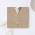 This wedding invitation is made of a double-sided card and a bookmark slipped on the inside. Two punched holes allow you to slide in a few dried flowers (to add as an accessory). So that your guests can appreciate the beauty of the whole invitation decorated with dried flowers, prefer hand-delivery to a postal send.