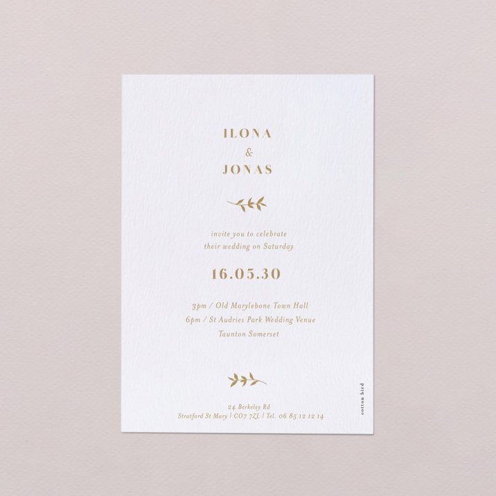 Decorated with gildings and rosemary wreath, the wedding invitation Fiorella is one of those timeless models that will perfectly reflect the exceptional character of your beautiful day.
