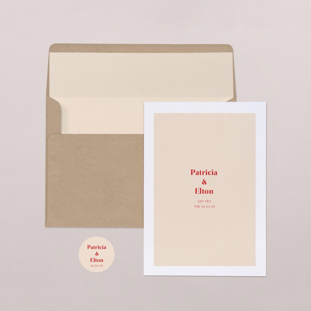 This invitation is a double-sided card with straight edges, customisable with the details of your wedding.