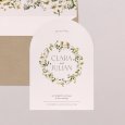 In the shape of an alcove, this invitation is customisable front and back with your wedding details.