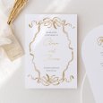On the Organdi wedding invitation, a delicate watercolored ribbon adorns the names of the bride and groom, highlighted with golden lettering. Imbued with elegance and lightness, this invitation promises a chic ceremony not to be missed.