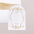 In the shape of an alcove, this invitation is customisable front and back with your wedding details.
