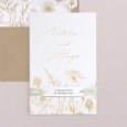This invitation comes in the form of a portrait card, with a central flap and two movable side flaps. When opened, they reveal the key details of your special day. Accessorize with a pretty ribbon (available at extra cost).