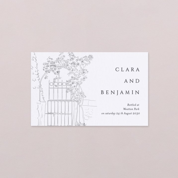 Personalise your table with our wine bottle labels to match your invitations.