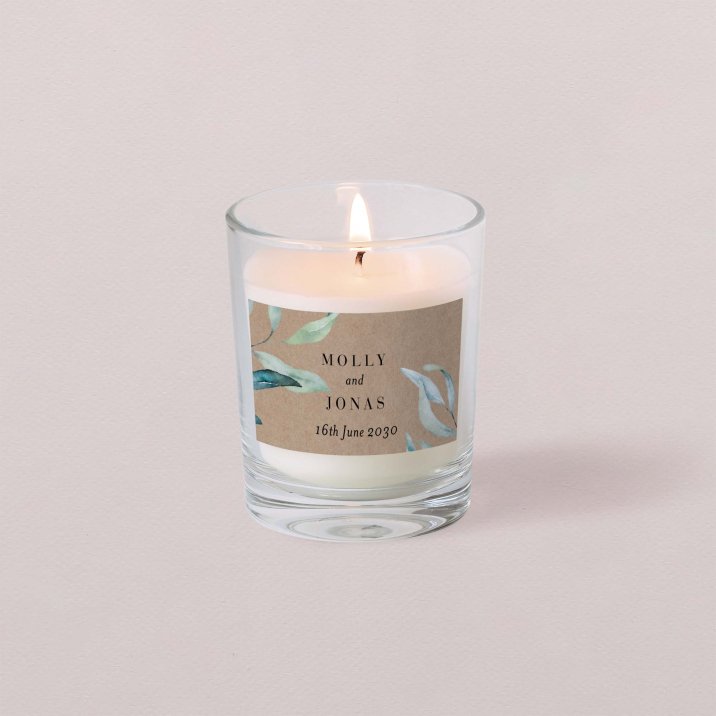 Let the memory of your union shine for your guests with this small personalised candle.