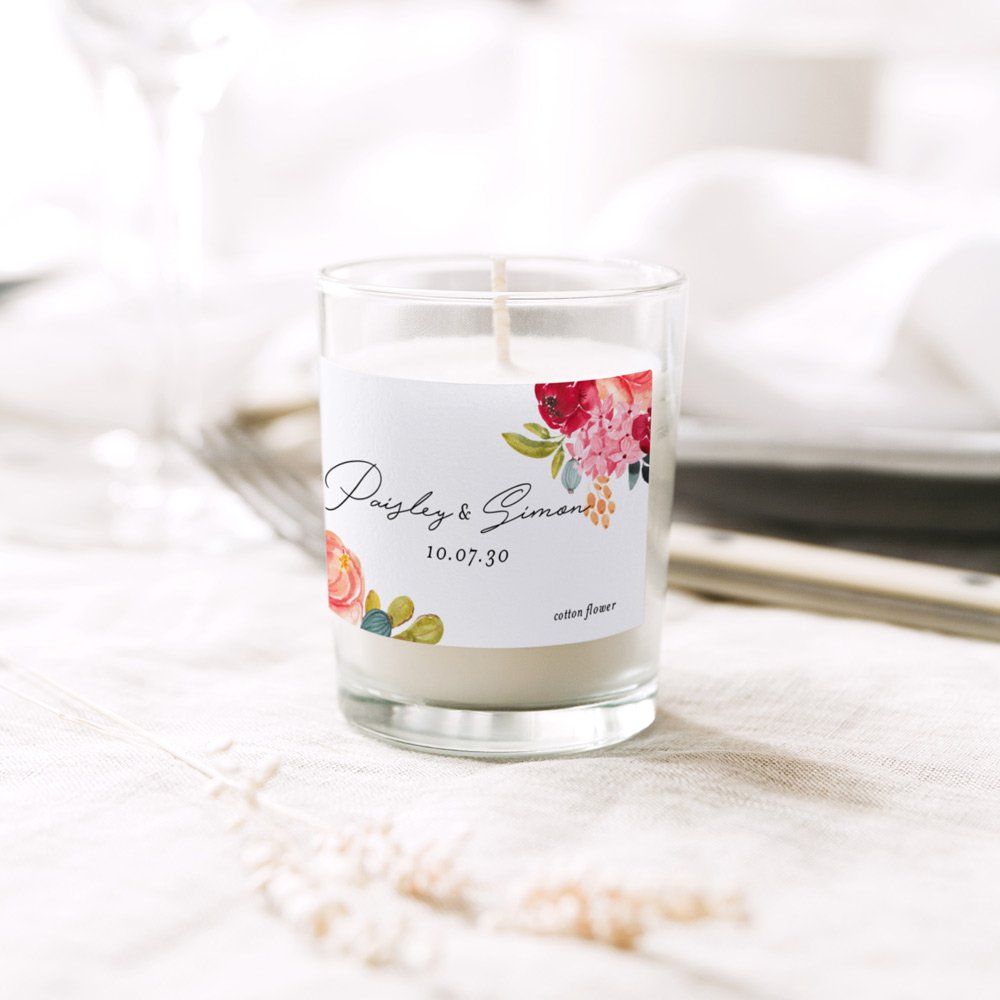 Let the memory of your union shine for your guests with this small personalised candle.