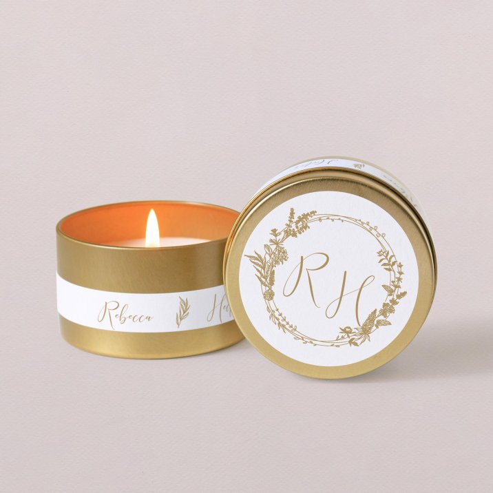 Our golden candle is the perfect wedding favour for your guests! Its delicate fig tree scent will take them back to the precious memories of your special day.