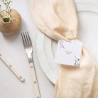 These name cards are perforated so you can tie them anywhere you like! Glasses, cutlery, napkins, sweet favours... the choice is yours! Really ingenious and decorative. Tie them around your menu with twine then slip inside a stylish napkin so all your guests can easily find their seats. Simply add the table number and a box of favours to add the finishing touch to your decoration!