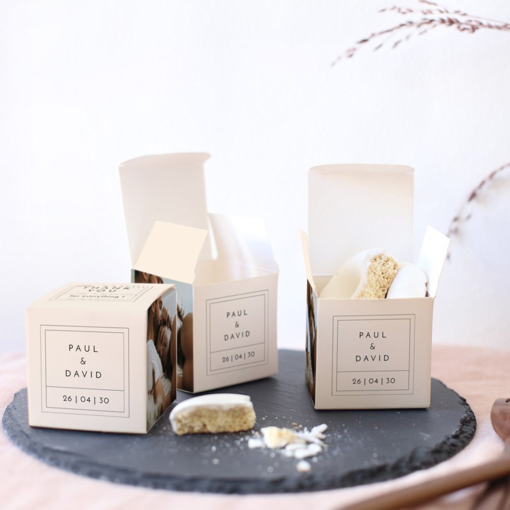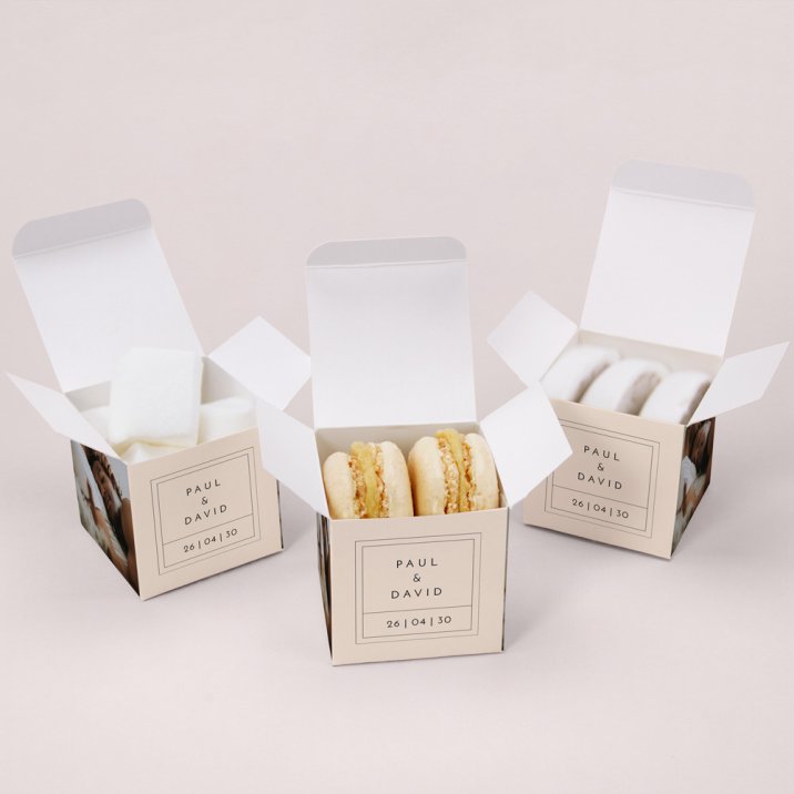 Let your creativity run wild by filling this little surprise cube with your favourite treats or local specialities: sweets, macarons, shortbread, marshmallows, nougat, meringues... whatever you like!