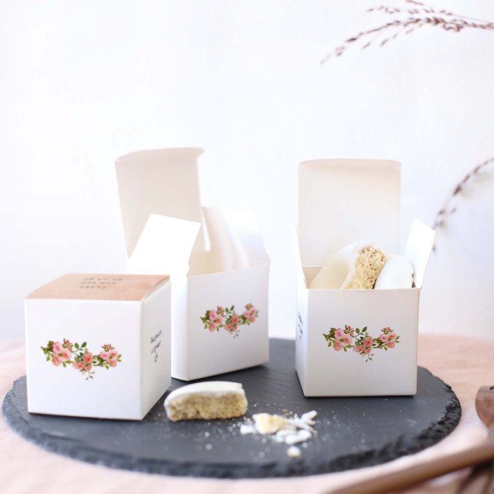 This little box measuring 5.4 x 5.4 cm is perfect for sweets or other little gifts. Give them to your guests as a souvenir of your wedding.