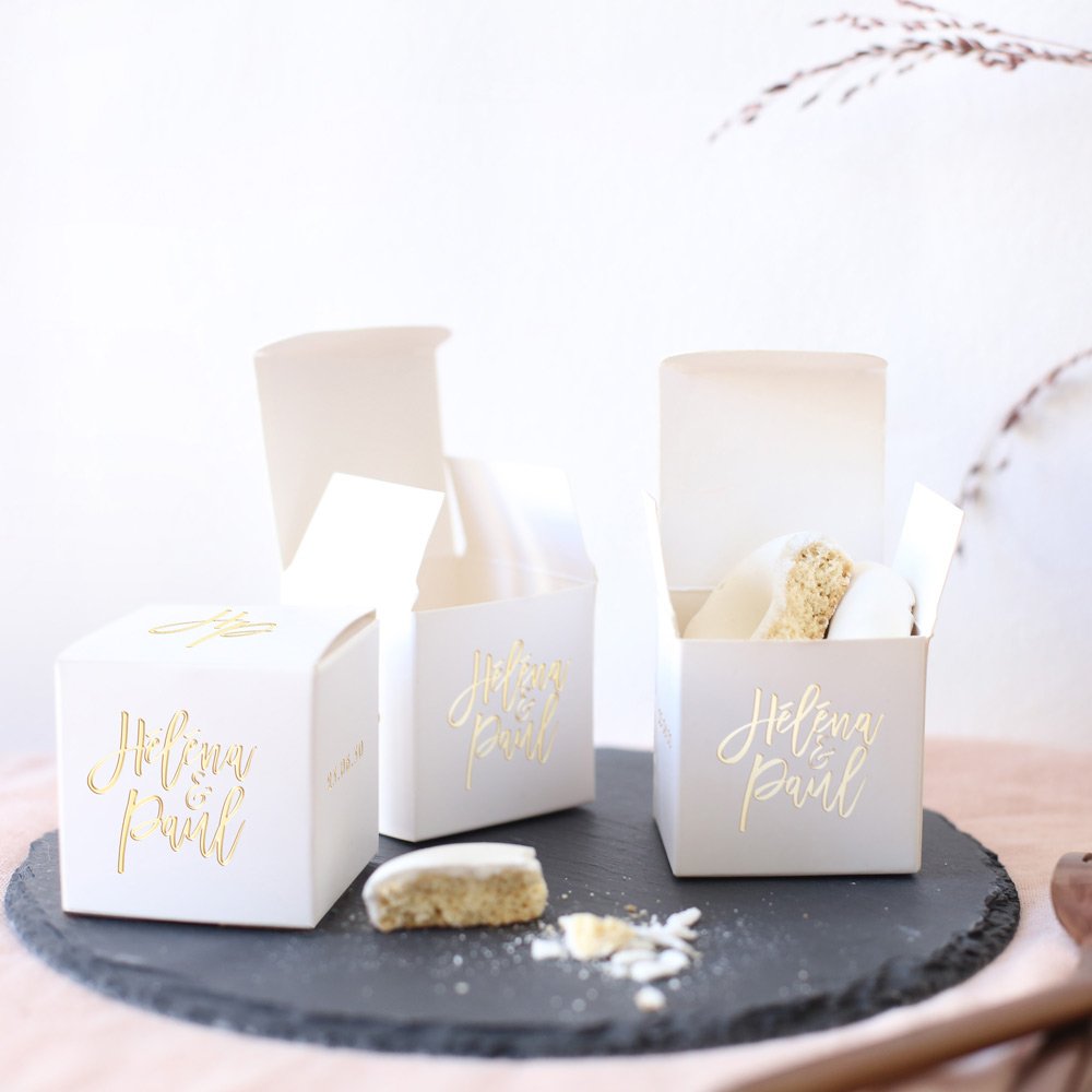 This little box measuring 5.4 x 5.4 cm is perfect for sweets or other little gifts. Give them to your guests as a souvenir of your wedding.