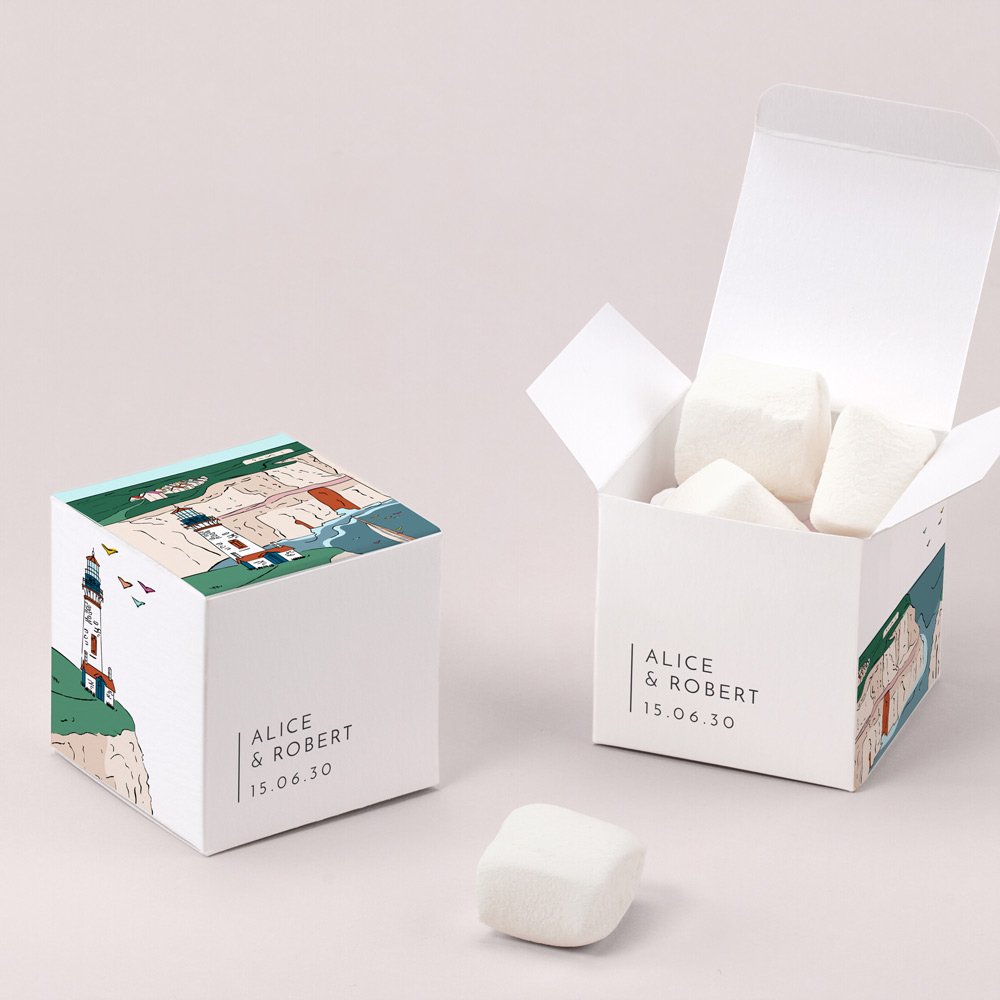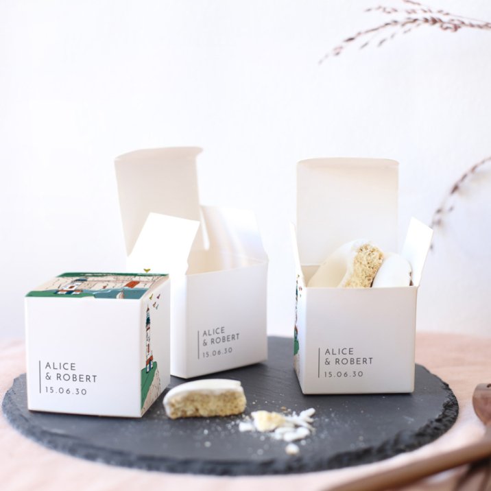 Let your creativity run wild by filling this little surprise cube with your favourite treats or local specialities: sweets, macarons, shortbread, marshmallows, nougat, meringues... whatever you like!