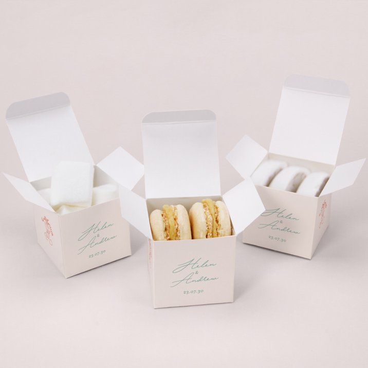 Let your creativity run wild by filling this little surprise cube with your favourite treats or local specialities: sweets, macarons, shortbread, marshmallows, nougat, meringues... whatever you like!