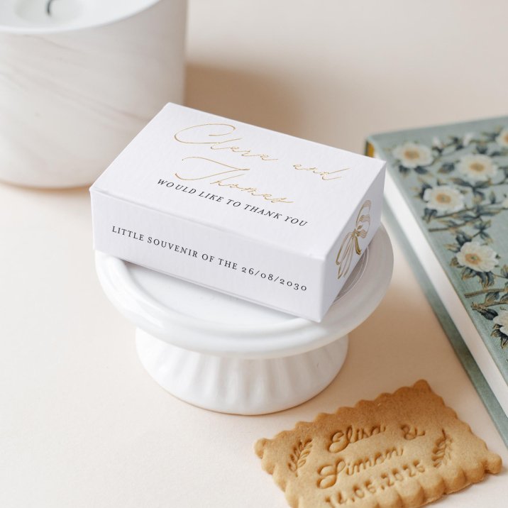 Specially designed, for 7x5cm biscuits, this box can contain up to 4. Assemble your boxes, then fill them with your personalised handmade biscuits! Share your recipe with us if you're especially proud of them. We do not provide the biscuits, we simply make the beautiful paper boxes that match your whole wedding stationery.