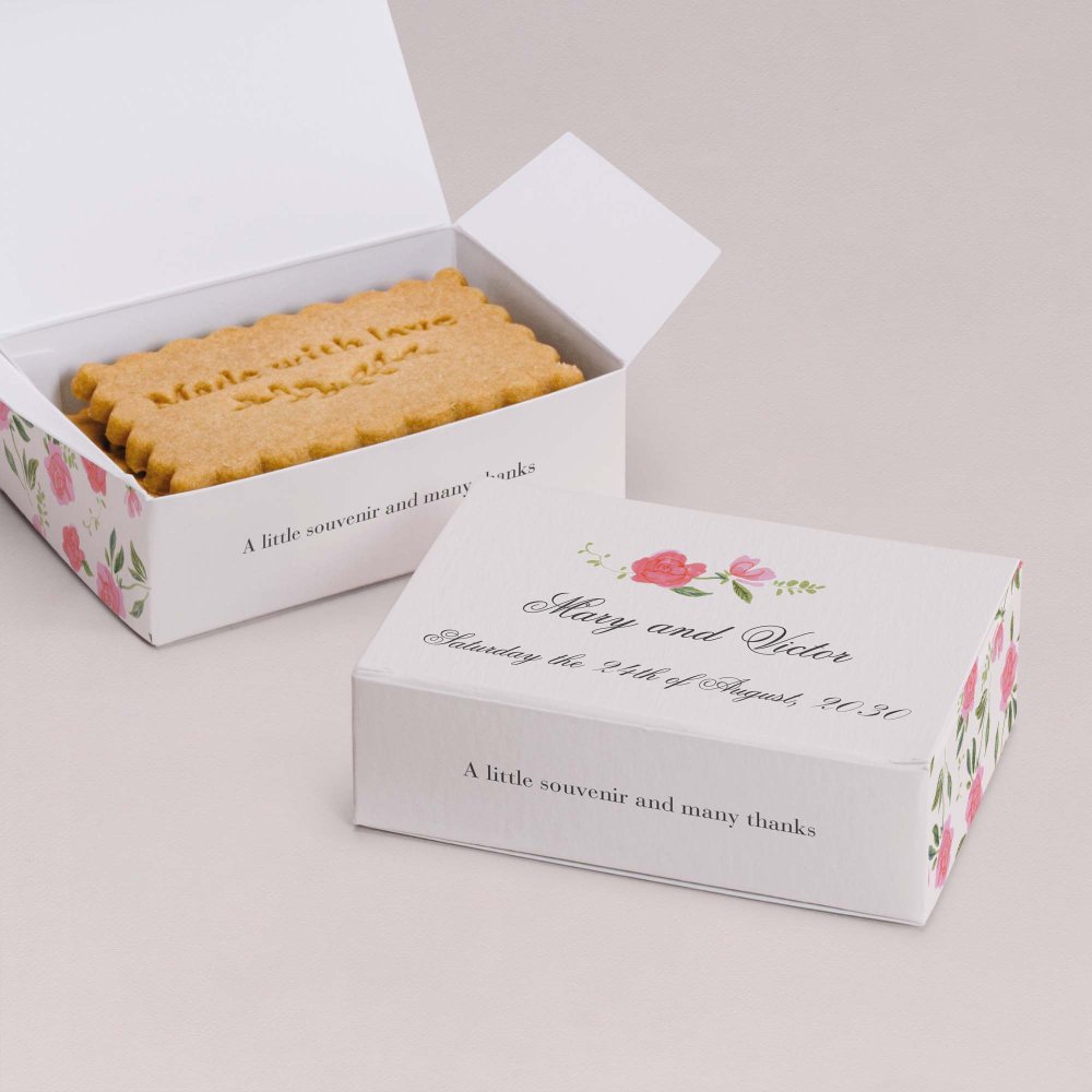 Specially designed, for 7x5cm biscuits, this box can contain up to 4. Assemble your boxes, then fill them with your personalised handmade biscuits! Share your recipe with us if you're especially proud of them. We do not provide the biscuits, we simply make the beautiful paper boxes that match your whole wedding stationery.