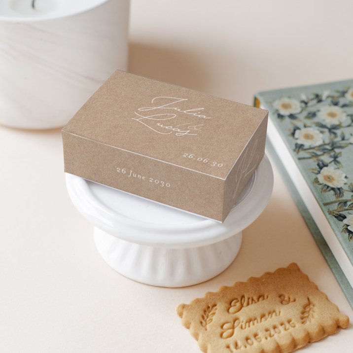 Specially designed, for 7x5cm biscuits, this box can contain up to 4. Assemble your boxes, then fill them with your personalised handmade biscuits! Share your recipe with us if you're especially proud of them. We do not provide the biscuits, we simply make the beautiful paper boxes that match your whole wedding stationery.