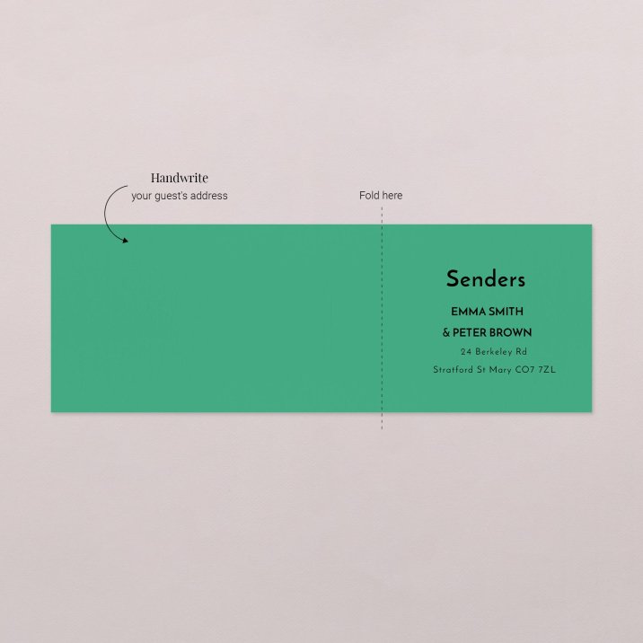 Your address will be printed on the right-hand side (for the back of the envelope), so all you need to do is write your guests' addresses on the left-hand side and post them!