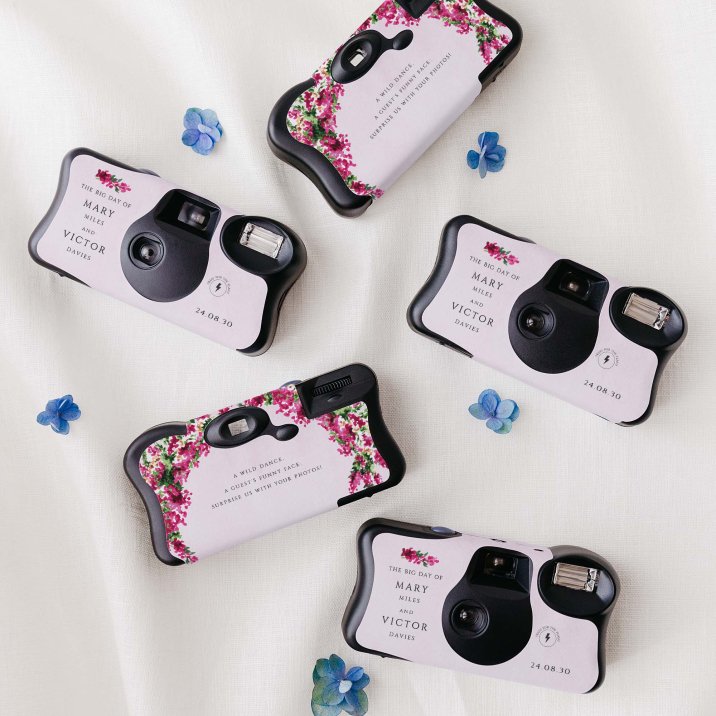 Personalise your disposable wedding camera with a customisable self-adhesive label that perfectly matches the theme of your special day.