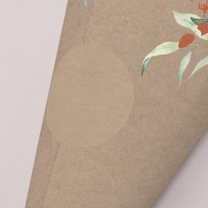 Supplied flat, to assemble into a cone and hold in place with a matching round sticker (provided).