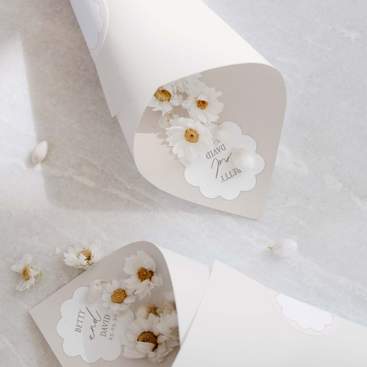 Supplied flat, to assemble into a cone and hold in place with a matching round sticker (provided).