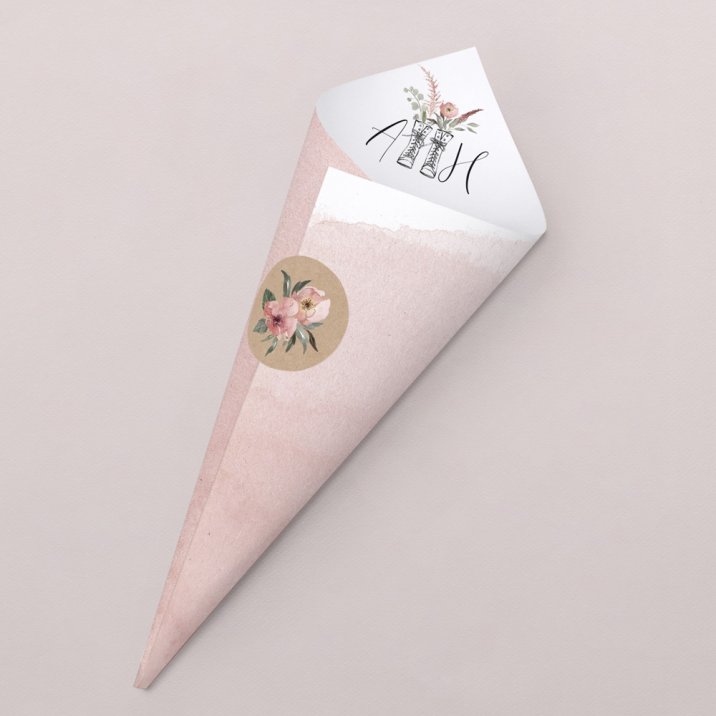 Supplied flat, to assemble into a cone and hold in place with a matching round sticker (provided).