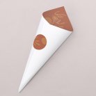 Supplied flat, to assemble into a cone and hold in place with a matching round sticker (provided).