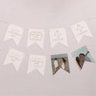 This garland made of 16 flags front and back can be personalised with your names, the photo of your couple, the date of your wedding, a little welcome note... The customisation continues with the choice of the string with two colours: natural or blanc/gold. We also offer to pimp them up a bit with beige or soft pink pompoms (to add as an option. Pompoms come by batch of 15).