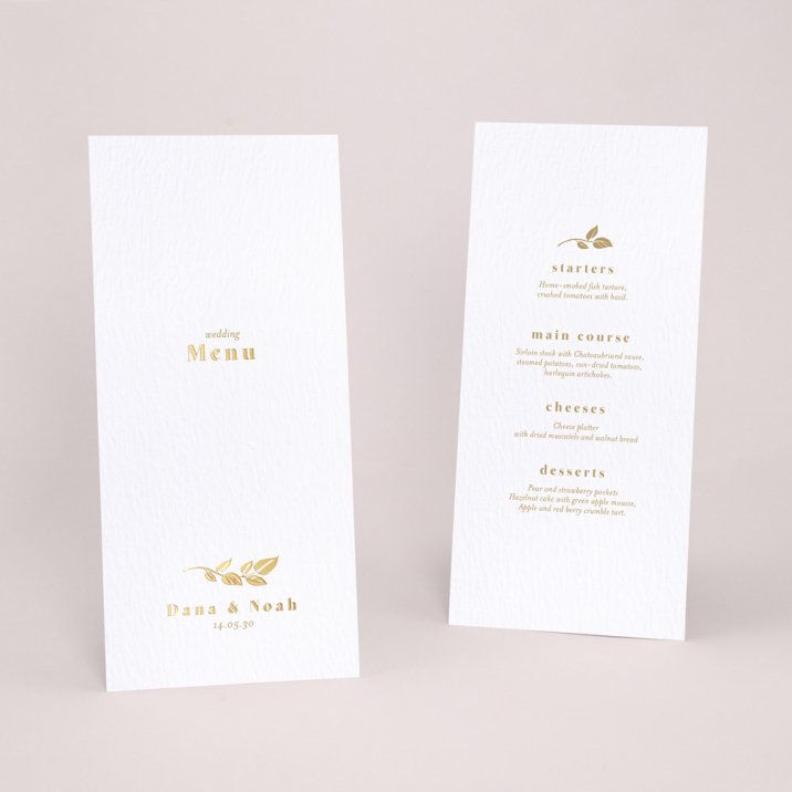 Now that you've decided on your wedding menu, have it printed on our menu cards to match your invitation!