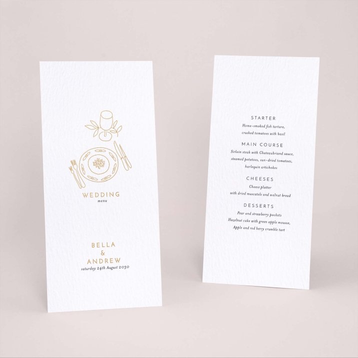 Now that you've decided on your wedding menu, have it printed on our menu cards to match your invitation!