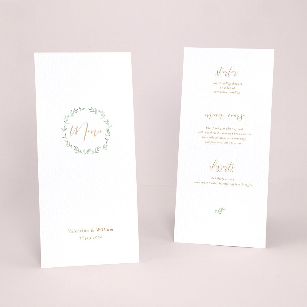 Now that you've decided on your wedding menu, have it printed on our menu cards to match your invitation!