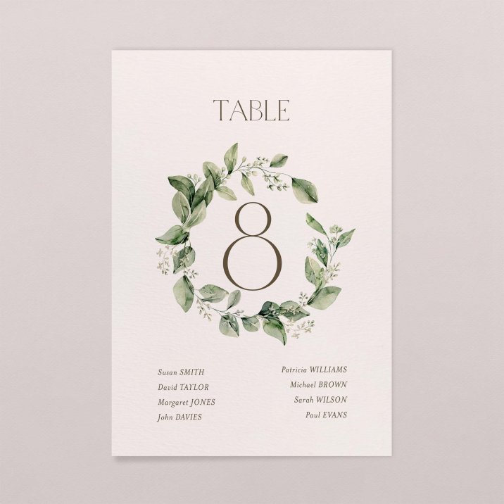 One card for each table, displayed at the room entrance to help your guests find their table with ease.