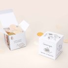 Assortment of sweets and other treats, mini toys, charms or fancy jewellery... let your creativity run wild to fill your cube with little gifts and personalise it with your child's name along with their birthday details (date, age, etc.) and a little thank you message.