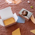 Specially designed, for 7x5cm biscuits, this box can contain up to 4. Assemble your boxes, then fill them with your personalised handmade biscuits! Share your recipe with us if you're especially proud of them. We do not provide the biscuits, we simply make the beautiful paper boxes that match your whole birthday stationery.