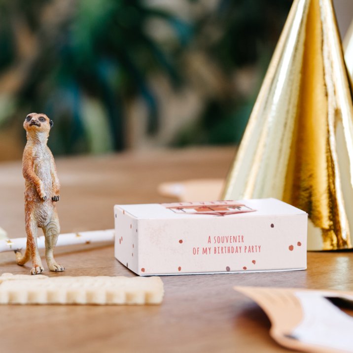 Specially designed, for 7x5cm biscuits, this box can contain up to 4. Assemble your boxes, then fill them with your personalised handmade biscuits! Share your recipe with us if you're especially proud of them. We do not provide the biscuits, we simply make the beautiful paper boxes that match your whole birthday stationery.