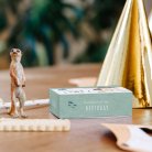 Specially designed, for 7x5cm biscuits, this box can contain up to 4. Assemble your boxes, then fill them with your personalised handmade biscuits! Share your recipe with us if you're especially proud of them. We do not provide the biscuits, we simply make the beautiful paper boxes that match your whole birthday stationery.
