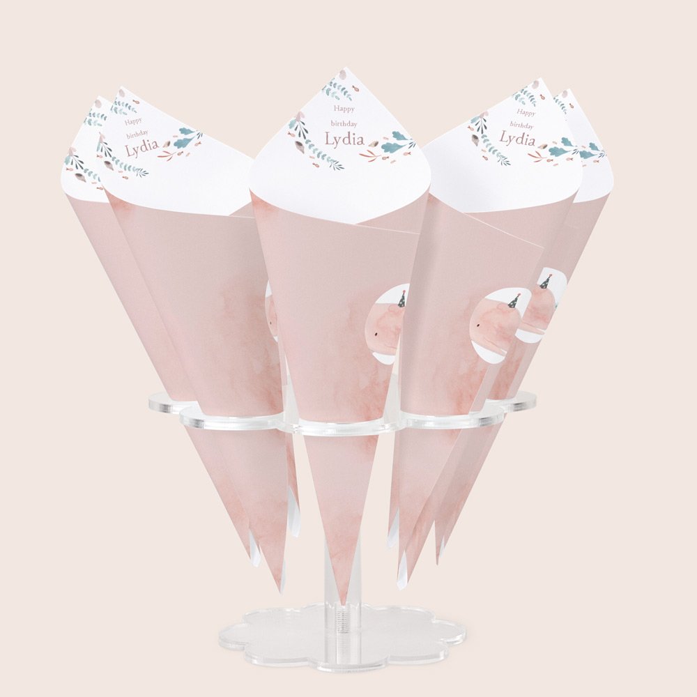 For a practical way to display your cones, we recommend placing them in a cone stand (optional extra), depending on the number of guests. You can put up to 8 cones on a stand.