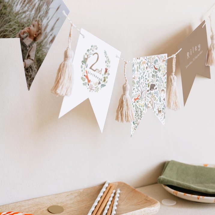 This double-sided 16-piece bunting garland can be personalised with a photo of your child, their name, age, a little party message... it's up to you!