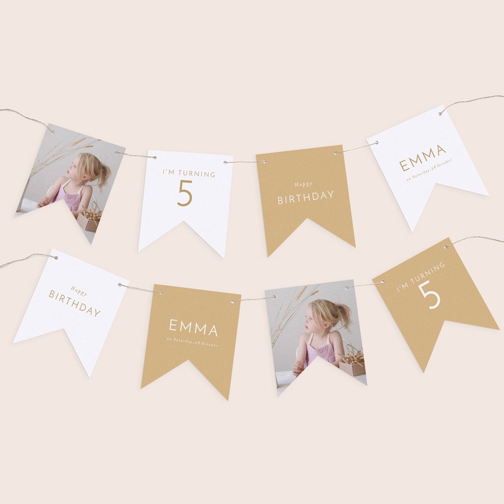 This double-sided 16-piece bunting garland can be personalised with a photo of your child, their name, age, a little party message... it's up to you!