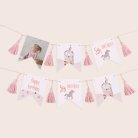This double-sided 16-piece bunting garland can be personalised with a photo of your child, their name, age, a little party message... it's up to you!