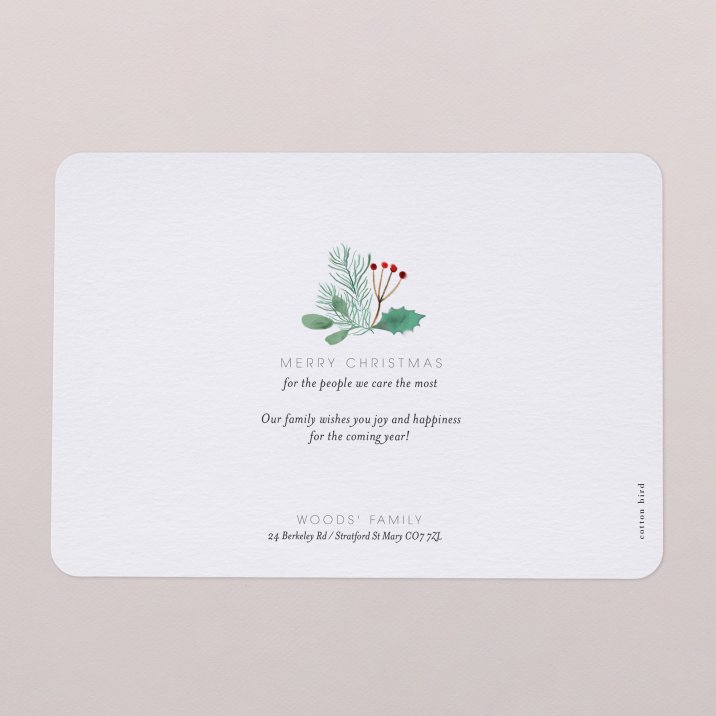 Winter leaves and seasonal colours come together on the Holy Green Christmas card. Personalised with the photograph of your choice, the design displays a lovely seasonal scene that your family will love to admire... and to keep once the holidays are over.