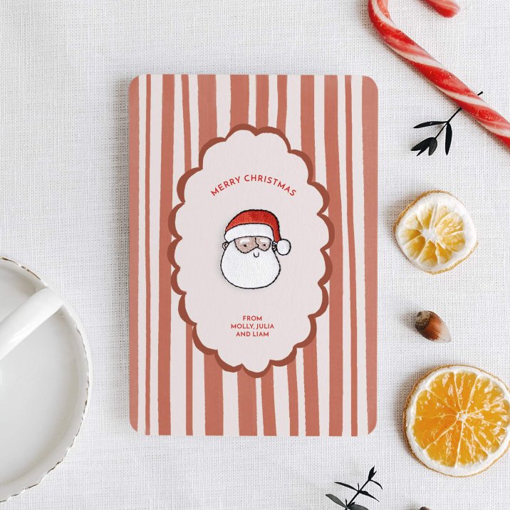 With its seasonal stripes and small embroidery, the Christmas cherry greetings card has been designed as a tender paper gift, ready to be given to the ones you love.